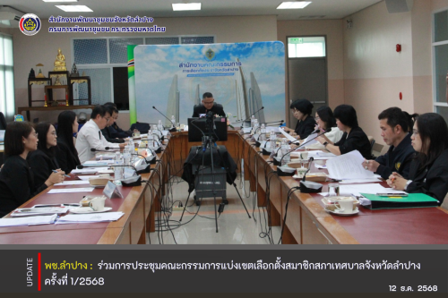 เวลา 14.00 น. นายวิวัฒน์ อินทร์ไทยวงศ์ ผู้ว่าราชการจังหวัดลำปาง มอบหมายให้ นายรณรงค์ เทพรักษ์ รองผู้ว่าราชการจังหวัดลำปาง เป็นประธานการประชุมคณะกรรมการแบ่งเขตเลือกตั้งสมาชิกสภาเทศบาลจังหวัดลำปาง ครั้งที่ 1/2568 ณ ห้องประชุมชั้น 3 สำนักงานคณะกรรมการการเลือกตั้งประจำจังหวัดลำปาง