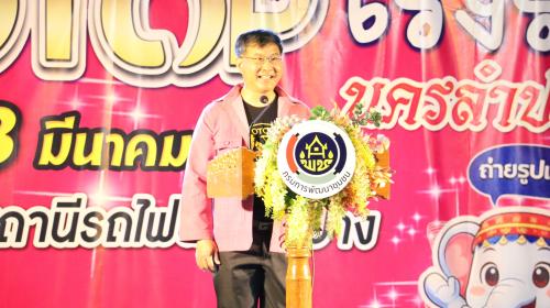 เวลา 19.00 น. นายวิวัฒน์ อินทร์ไทยวงศ์ ผู้ว่าราชการจังหวัดลำปาง มอบหมายให้ นายพัชระ สิมะเสถียร รองผู้ว่าราชการจังหวัดลำปาง เป็นประธานพิธีเปิดงาน “OTOP เริงร่า นครลำปาง @รถไฟ ครั้งที่ 3” ประจำปี 2569 โดยมี นางจิรา บุญบรรจง พัฒนาการจังหวัดลำปาง กล่าวรายงาน พร้อมด้วย สารวัตรงานเดินรถแขวงลำปาง หัวหน้าส่วนราชการระดับจังหวัด พัฒนาการอำเภอ ภาคเอกชน เครือข่าย OTOP และประชาชนทั่วไป ร่วมพิธีเปิดงานฯ ณ บริเวณเวทีด้านหน้าสถานีรถไฟนครลำปาง ตำบลสบตุ๋ย อำเภอเมืองลำปาง จังหวัดลำปาง โดยการจัดงานในครั้งนี้ ได้รับความร่วมมือจากเครือข่าย ภาคี และหน่วยงานต่าง ๆ เป็นอย่างดี ได้แก่ สถานีรถไฟนครลำปาง มหาวิทยาลัยราชภัฏลำปาง เทศบาลนครลำปาง องค์การบริหารส่วนจังหวัดลำปาง การไฟฟ้าส่วนภูมิภาคจังหวัดลำปาง สถานีตำรวจภูธรเมืองลำปาง และหน่วยงานอื่นๆ ที่เกี่ยวข้อง