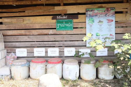 ด้านการใช้ประโยชน์พื้นที่ มีการจัดสรรอย่างหลากหลาย ทั้งนาข้าว บ่อปลา และแปลงผักพื้นบ้าน เช่น ผักกูด ชะอม มะเขือพวง ข่า และตะไคร้ รวมถึงการปลูกไม้ผลและไม้ยืนต้นตามแนวคิด “ไม้ 5 ระดับ” และ “ป่า 3 อย่างประโยชน์ 4 อย่าง” อาทิ ตะเคียน ยางนา มะค่าโมง มะฮอกกานี และรวงผึ้ง ช่วยเพิ่มความหลากหลายทางชีวภาพและสร้างรายได้ระยะยาว