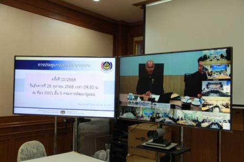เวลา 09.30 น. นายสุรศักดิ์ อักษรกุล อธิบดีกรมการพัฒนาชุมชน เป็นประธานการประชุมกรมการพัฒนาชุมชน ครั้งที่ 10/2568 พร้อมด้วย รองอธิบดีกรมการพัฒนาชุมชน ผู้ตรวจราชการกรมการพัฒนาชุมชน ผู้อำนวยการสำนัก/กอง/ศูนย์/สำนักงานพัฒนาชุมชนจังหวัดและอำเภอ ทั้ง 76 จังหวัดทั่วประเทศ เข้าร่วมการประชุมฯ ผ่านระบบวีดิทัศน์ทางไกล (VDO Conference) ณ ห้องประชุม 5001 ชั้น 5 กรมการพัฒนาชุมชน กระทรวงมหาดไทย