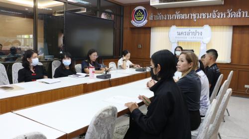 ในการนี้ นางจิรา บุญบรรจง พัฒนาการจังหวัดลำปาง มอบหมายให้ นางทิพย์วรรรณ แก้วทอง ผู้อำนวยการกลุ่มงานยุทธศาสตร์การพัฒนาชุมชน พร้อมด้วยผู้อำนวยการกลุ่มงาน และเจ้าหน้าที่พัฒนาชุมชนจังหวัดลำปาง เข้าร่วมการประชุมฯ ณ ห้องประชุมสำนักงานพัฒนาชุมชนจังหวัดลำปาง ชั้น 3 ศาลากลางจังหวัดลำปาง